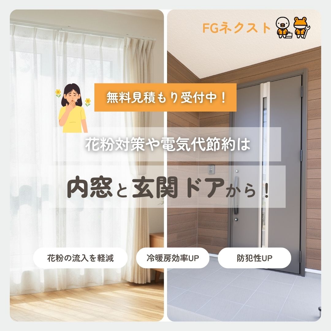 内窓を設置することで気密性が向上し、花粉の侵入を減少できる効果があります!