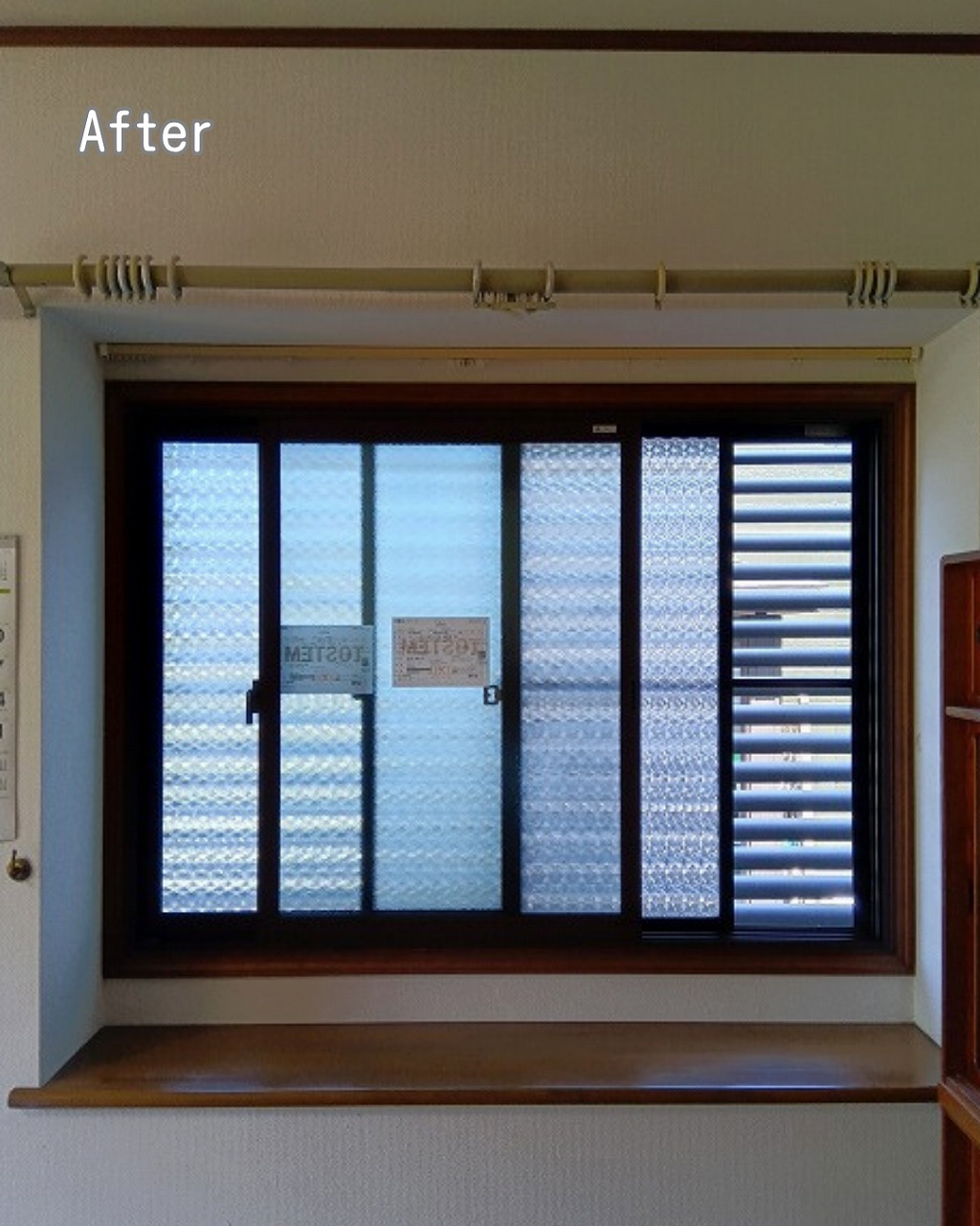 既設の模様ガラスのデザインを活かしながら、内窓で寒さ対策を実現できるのが大きなメリットです。