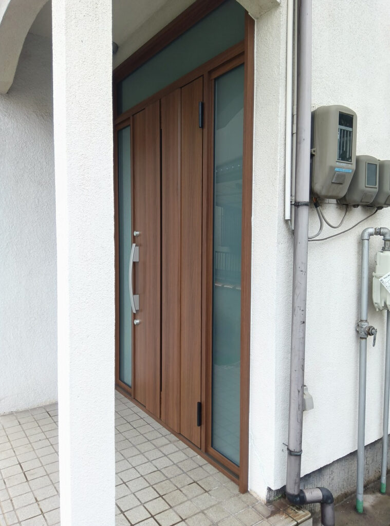 夕方には新しい玄関ドアと袖窓の設置が完了し、鍵の開閉動作や気密性の確認まで完了。お客様には「今日から新しい玄関で戸締りができます」とお伝えでき、大変安心していただけました。古い玄関の全面交換でありながら、1日で完了できたのは、事前の現場確認と提案段階での詳細な打ち合わせがあったからこそです。